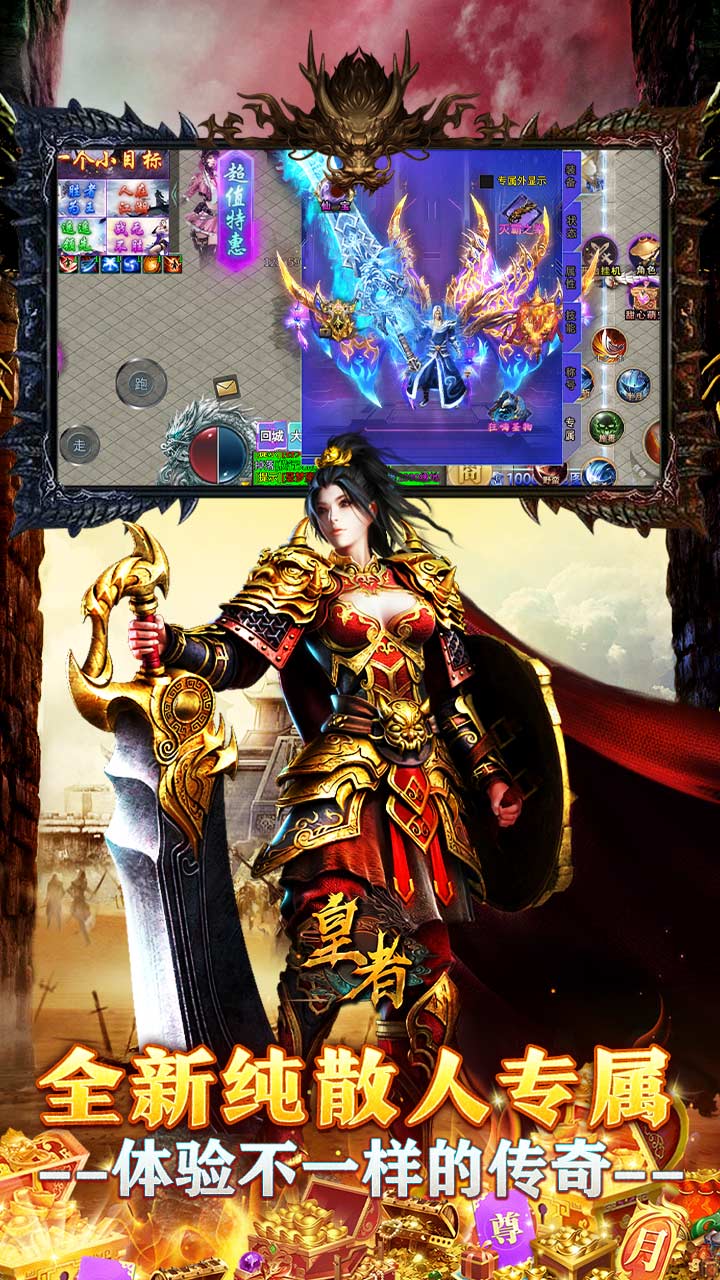 1、无任何套路,无强制消费,花时间均可免费获得。 2、团队耗时一年全新打造!只为让玩家嫖到爽! 3、货币,装备,神装,充值超超超超超超好打!各种福利送送送送送送! 4、幸运抢红包,等级奖励,杀怪奖励,各种充值,材料,特殊,送送送。