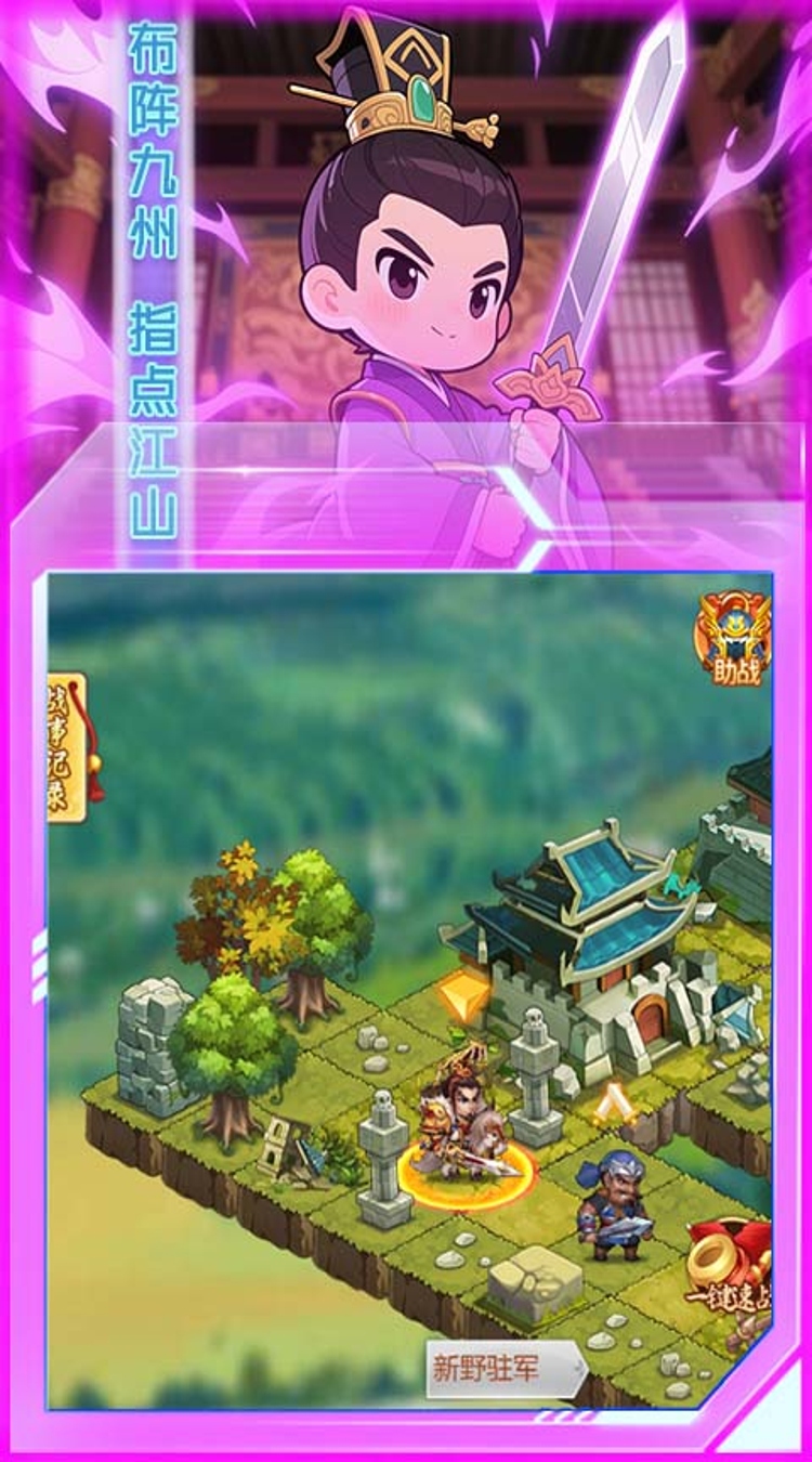这是一款三国背景题材的放置卡牌养成游戏。你将成为一方诸侯,召唤八方武将,组成自己的战队与全服玩家逐鹿天下!精美的卡牌立绘再现百位经典英雄名将,满足收集控需求,武将多种阵营属性自带个性技能,让你运筹帷幄智慧搭配,轻易掌握策略战斗的乐趣,养成设计丰富又轻松,换将无压力哦。还可以拥有各类灵兽搭配上阵,锻造神器穿戴红装,感受剧情,各类军团战国战跨服战缤纷等你开打。每日日常任务只需几分钟,无需爆肝佛系挂机