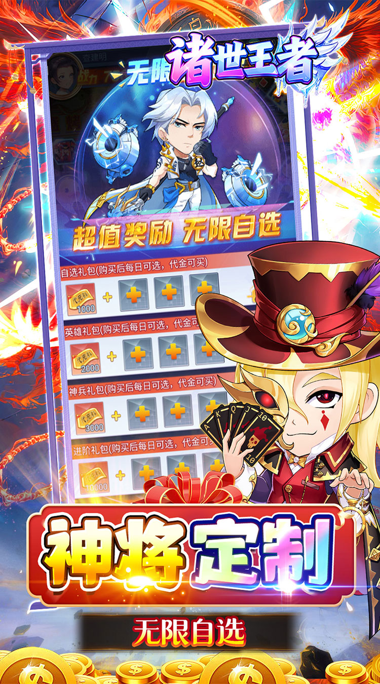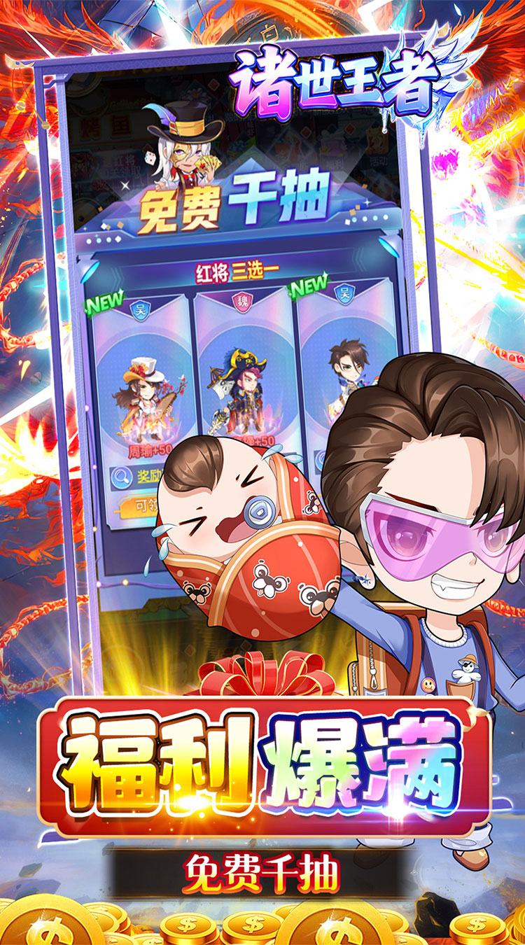 全新放置开箱卡牌手游《诸世王者》回馈上线,游戏采用大量嘻哈搞怪的人物形象和炫酷爆笑的战斗表现效果,重构有温度的三国世界。每日领取万张内置代充券,直接抵扣充值。趣味开箱,全自动托管,集多种PVE、PVP玩法和特色养成线,打破传统束缚让游戏变得更为轻松,即刻召集群雄开启一统三国新征程!