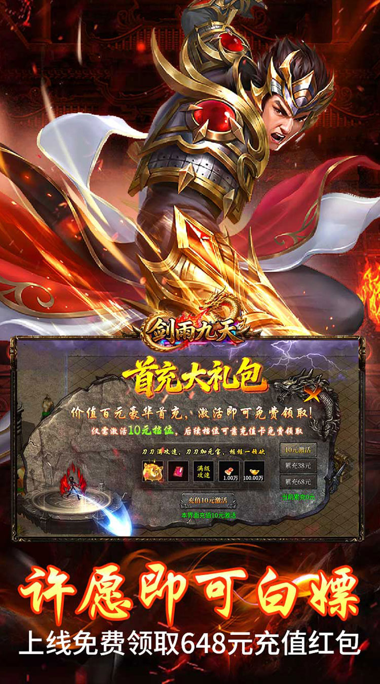 上线免费领取648充值红包,送货币送累充 七日登录,上线即可领取每日豪礼 福利礼包,一次充值两次消费,致力低消 累充奖励,充值卡也可激活领取