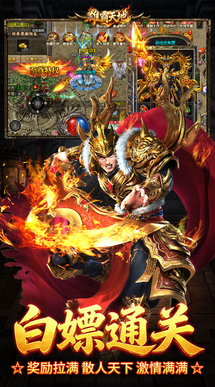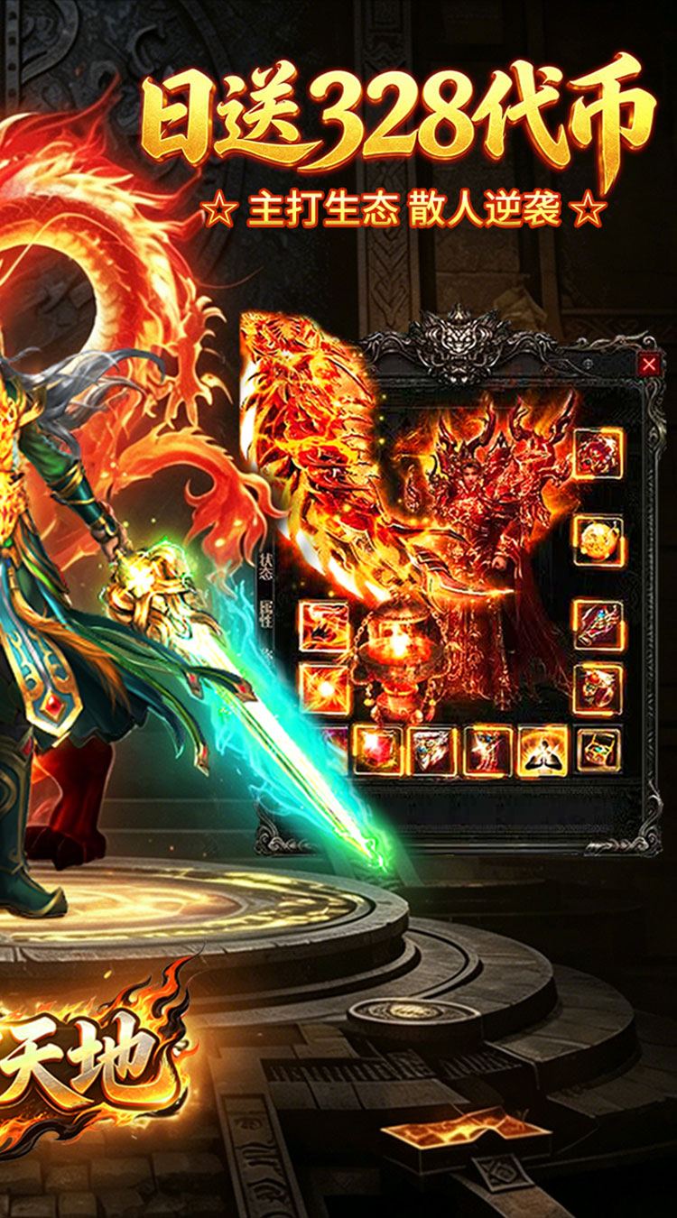 ★上线福利★ 每天送328个代币,各种礼包白嫖到手 ★在线奖励★ 在线一定时长即可领取在线奖励,获取代金券和钻石 ★七日登陆★ 每天登陆可领取超值奖励,代金券,红包,元宝拿到手软 ★全服首爆★ 达成首爆即可获取大量钻石奖励