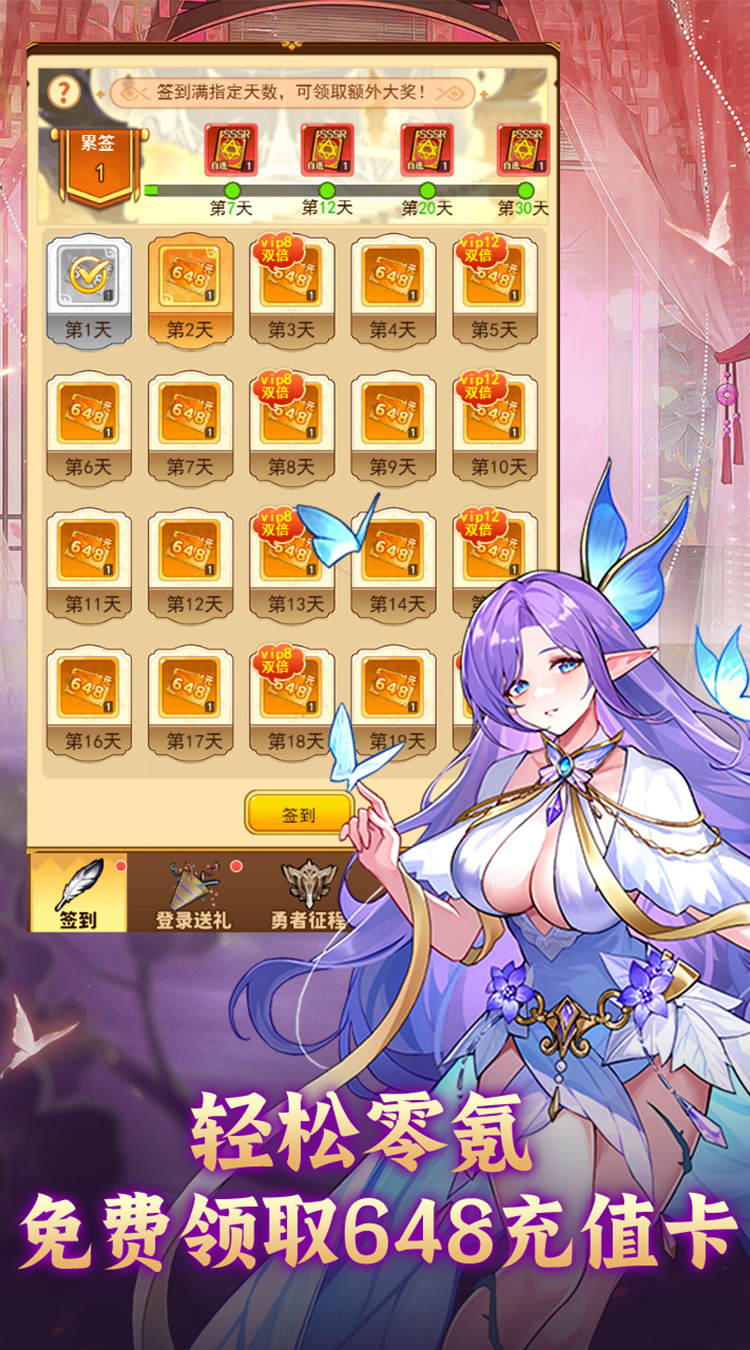 【万元充值】每天签到领取"648充值卡*1  1:1还原真实充值!