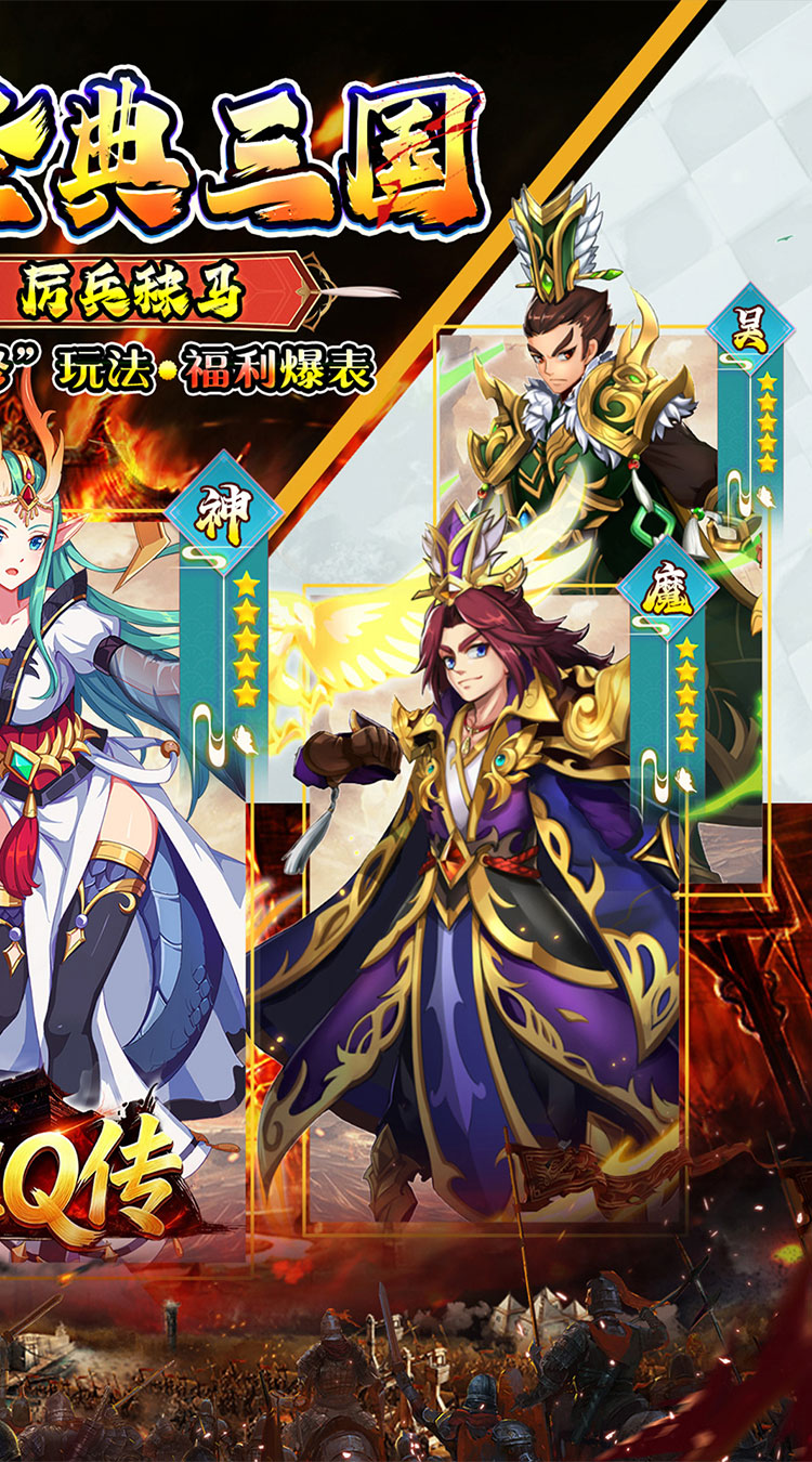 《幻想Q传》是一款全新三国题材策略卡牌手游,真实还原剧情,争霸天下,攻城掠阵,融入众多历史名城以及经典战役元素,超然万物的名将助您角逐三国之巅。0.05折的价格,升级即可领取代金券,更有海量福利,丰富活动,等主公您体验。畅享无双豪情~