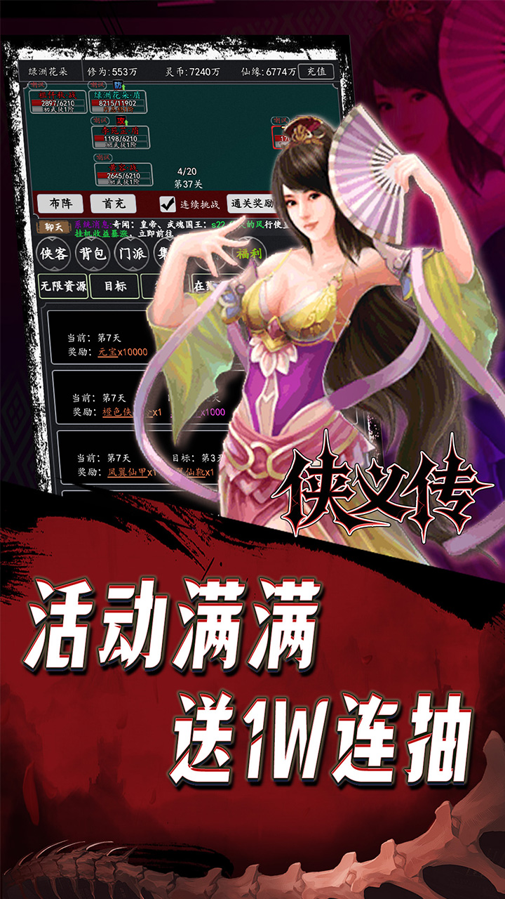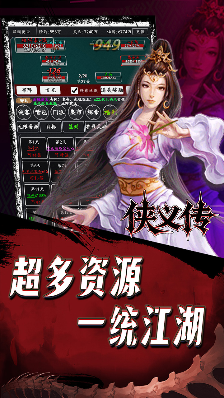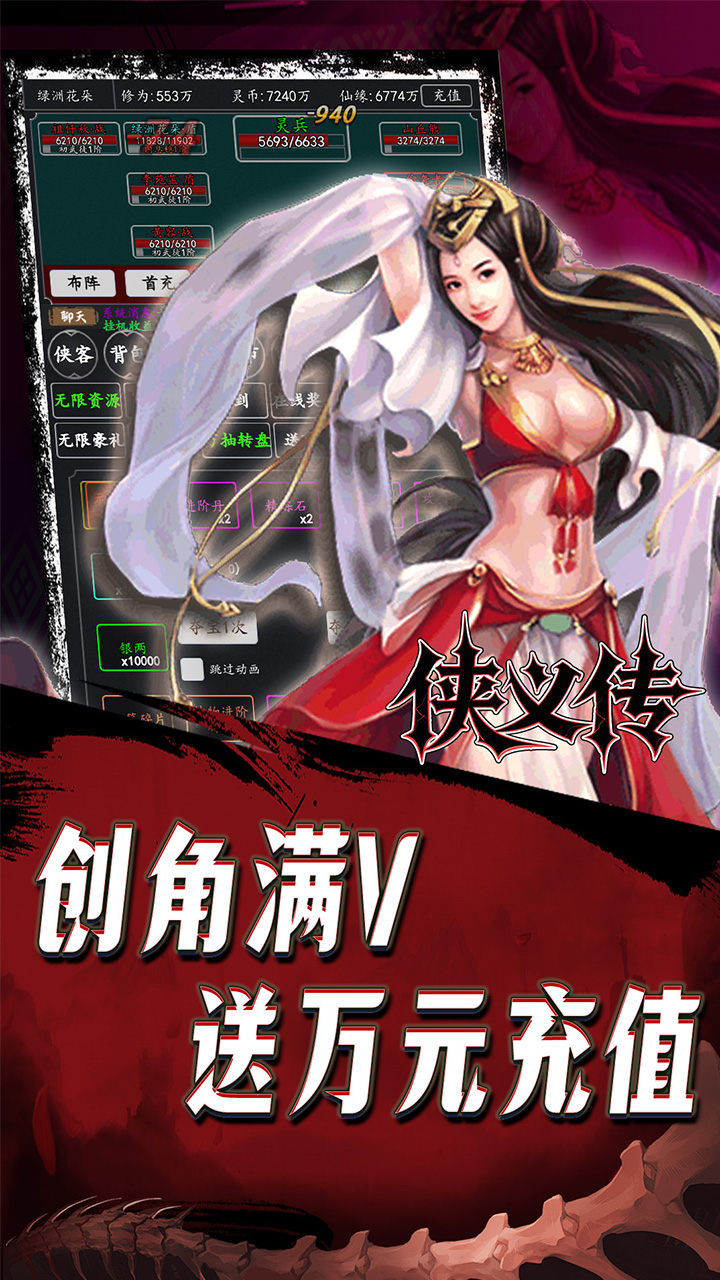 1、全场物价锁定永久0.05折,江湖畅玩无负担,消费轻松无压力! 2、登陆即领取专属称号、元宝招募令*100、6666W元宝、6666W银两、500W修为和5000W至尊灵液、秘笈碎片*6666、圣物碎片*6666、红色稀有侠客任选*1、红色秘笈任选*1,开局资源直接拉满,轻松开启江湖征程! 3、登录就送万元真实充值,在线还能参与万次福利抽奖,充值卡礼包无门槛领取,秒速到账不等待! 4、上线即送VIP修为卡*648,顶级VIP18特权一键全开,无需氪金就能享受满V待遇,尊享江湖特权! 5、挂机即可自动推关,轻松躺平也能进阶!离线期间收益不断,海量资源无需费力肝玩,轻松囤满背包! 6、不费肝不氪金,满满真福利!全员皆可成猛将,哪怕一分钱不花,也能登顶江湖巅峰!