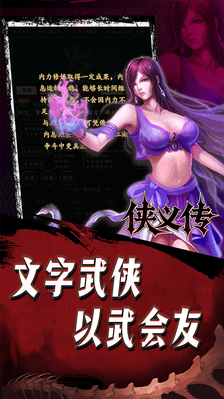 这是一款国风武侠文字冒险手游。在这片浩渺江湖中,你将以无名少侠的身份开启命途。穿过竹林剑影偶遇隐世高人,于客栈对弈窥见江湖秘辛,在崖间秘洞拾得失传残卷。正派与魔教的千年纠葛、名门子弟的生死情义、市井游侠的快意恩仇,皆化作跃动的文字徐徐展开。无需繁琐操作,静观江湖百态随日月轮转,每段邂逅都可能触发命运转折。水墨丹青绘尽恩怨浮沉,指尖轻点间,属于你的武林传说正悄然落笔。 江湖路远,幸好有文字相伴;侠名未成,等你用选择书写。