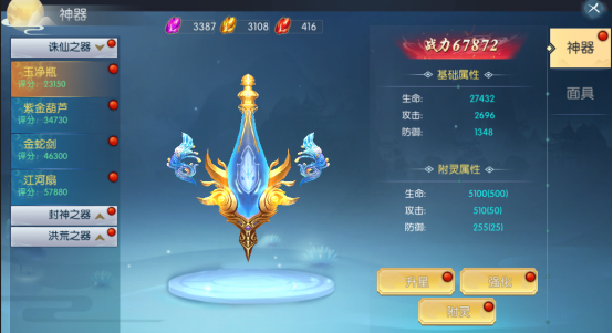 u 激活神器后,神器会为主角提供属性,激活的神器越多属性越高
