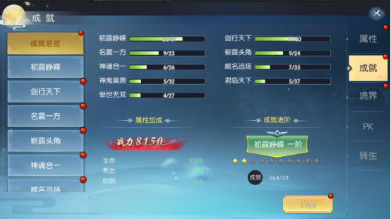 u 玩家在游戏内达成一定的目标后可获得成就点数和绑元奖励;可以使用成就点数提升成就等级,成就等级提升后可获得属性加成