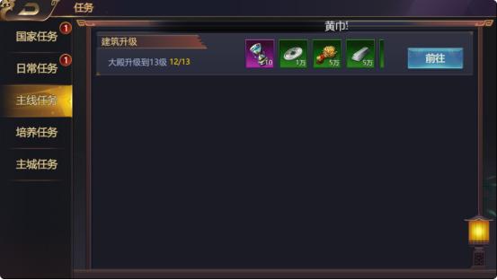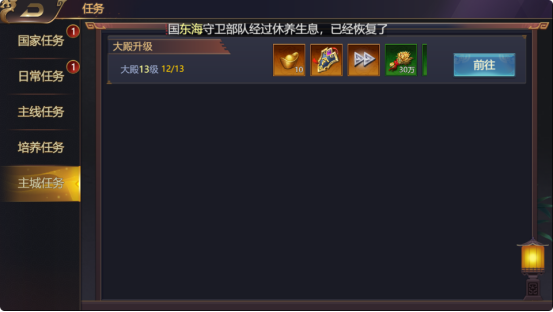 通过完成主城的建筑升级任务可以获得丰厚的任务奖励。