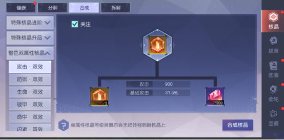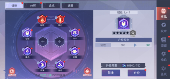 2、多余的核晶可以进行分解获得核晶经验,或合成更好属性的核晶;